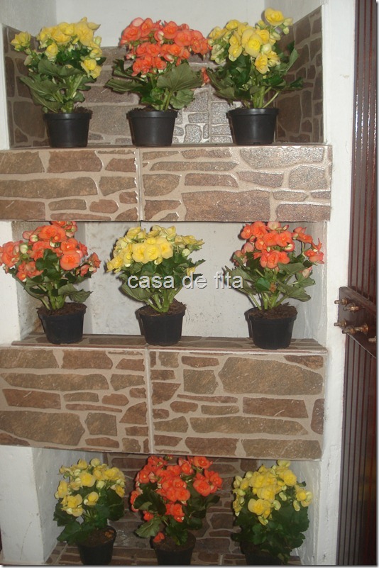 As flores foram compradas na Cadeg por nós na quinta-feira as 5 horas da manhã,lá é ótimo , tem muitas opções de flores e preços. A churrasqueira foi enfeitada com begônias laranja e amarelo.
